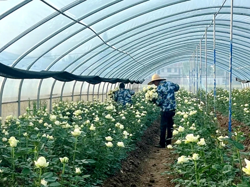 一朵玫瑰,何以成為“經(jīng)濟(jì)”?答案藏在村民的賬本里——畝產(chǎn)9000枝的收益,藏在采購(gòu)商“不用再調(diào)高價(jià)貨”的感慨中,更映在村莊越來(lái)越美的圖景上。